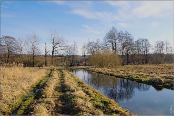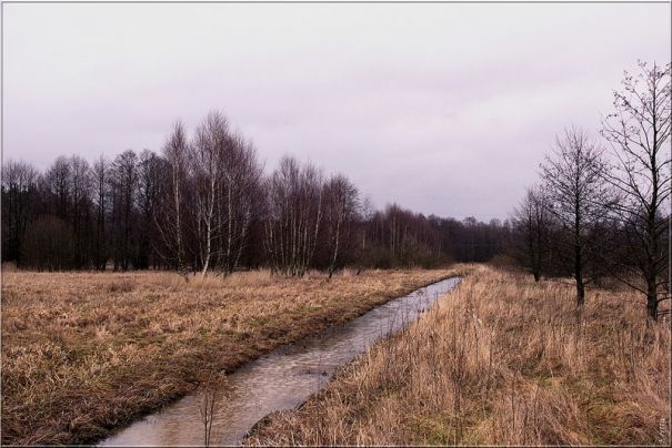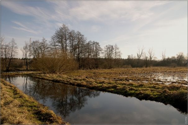 Вот они, собственно. Оросительный канал с водой, потому такой прямой, что (скорее всего) искусственный, там где растет линия деревьев, собственно, наша речка. Таких каналов по тому болоту полно, между ними — луга поросшие травой. Сейчас малопроходимые без резиновых сапог, летом… частенько вполне, только надо быть осторожным. Ну и зуб не даю, хоть я на такую не выгляжу, а по таким местам хожу редко. Мы по дорожкам и тропинкам все же спецы.