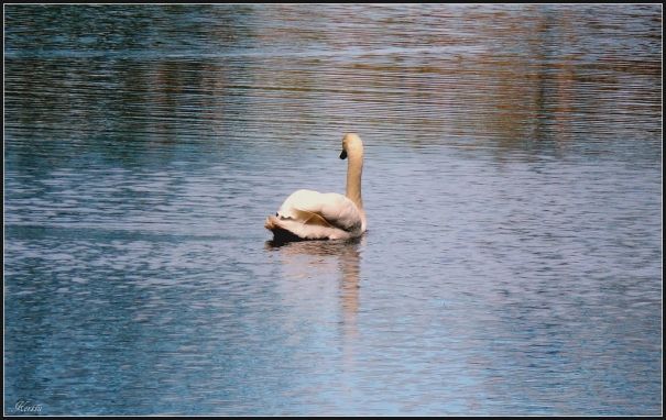 Первое — пролетел надо мной лебедь… ржавый, т.е., молодой, прошляпила. Стою себе злая, за спиной дорога, ну достаточно далеко, метров так пятьдесят, думаю, будет, с одной стороны — то болото, с другой — канал, пройти никак… а с речки голоса… я сижу в шоке — как? Рыбаки шоль, их тут много, но больше там, где берега менее критичные… и тут здрасти… сезон открыт…