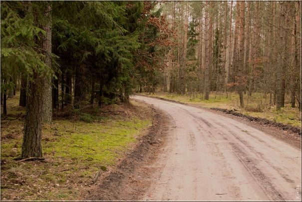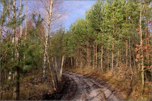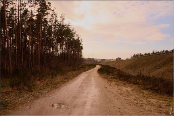 Дальше та самая дорога, по которой я никак не могла дойти до моей асфальтированной))) хотя крепенько подозреваю, что я лишь немного не дошла, это раз, два, поскольку там у выхода из леса — горка с поворотом и нет пешеходной дорожки, может, и ладно, что не дошла.