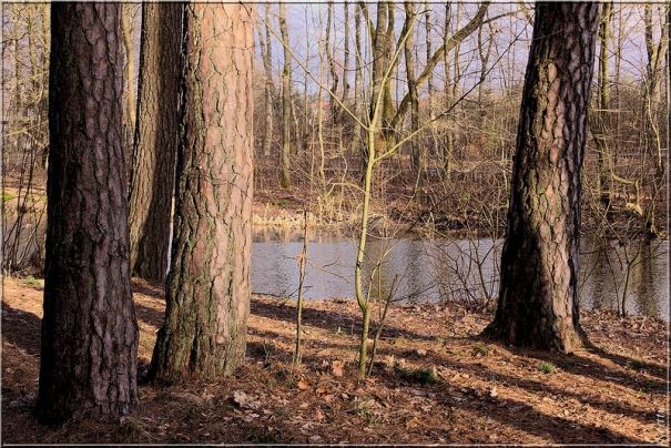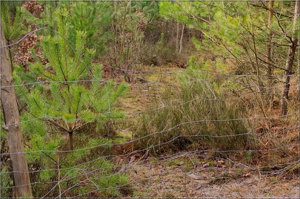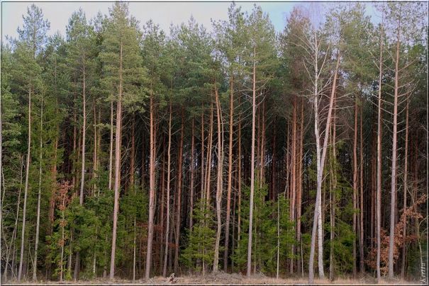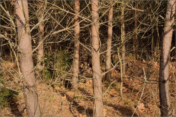 Сосны растут себе за загородкой, где им никто, теоретически, не мешает. Практически — зверюшки такого свинства не любят. Зверюшек тут хватает, если что.