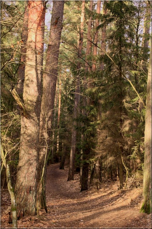 Лесная дорожка. На этот раз однотипная — с одной стороны сосны, с другой стороны — сосны.