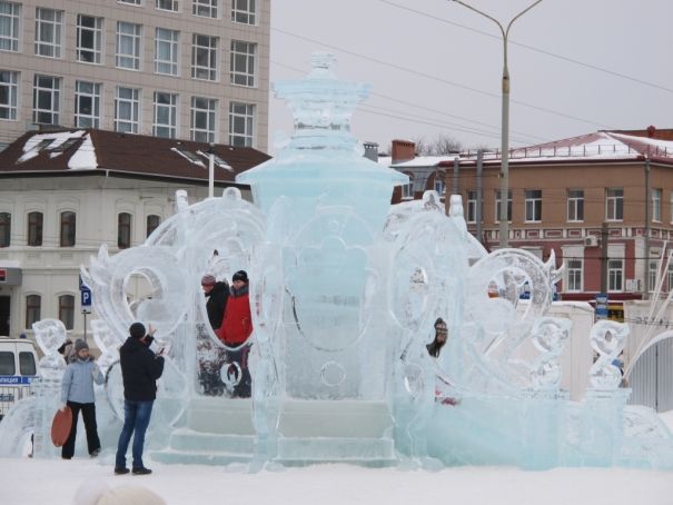 Приглашаю вас на фотопрогулку в Ледовый городок. Пробегала мимо, жаль не засняла вечером с подсветкой.