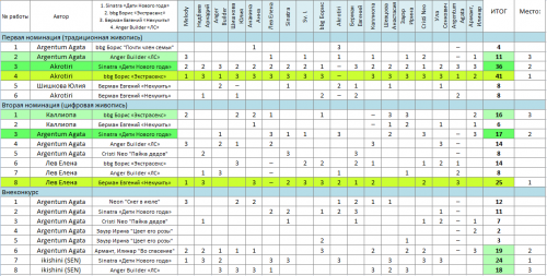 Больше всего голосов набрали работы Argentum Agata (№6) и ikishini (№7, №8).
