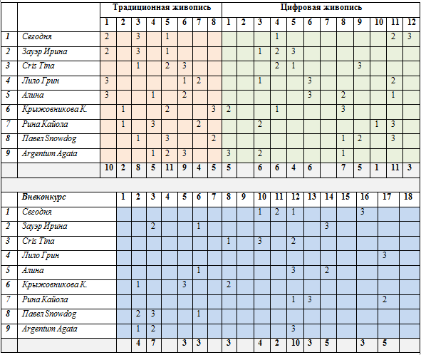 В номинации «Традиционная живопись» побеждает Рина Кайола, а в номинации «Цифровая живопись» — Cris Tina!