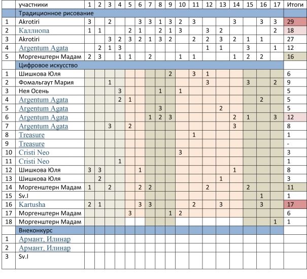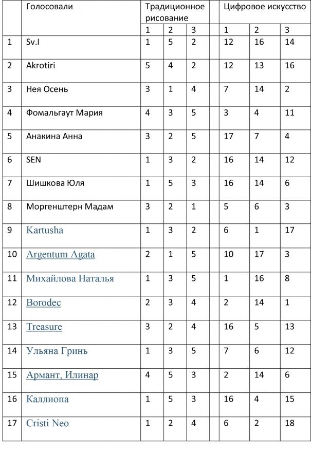 Таблица Голосивших: