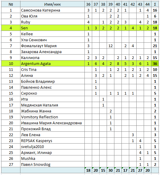 В игре участвовало 27 художниов, случилось 18 побед, было 9 победителей.