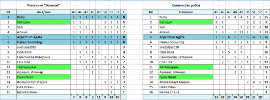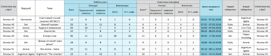 В игре участвовало 16 художников, случилось 16 побед, было 6 победителей.