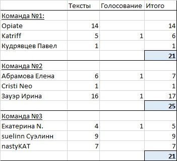 б). общение в общей командной личке или в личках между собой на заданную тему тура и её вариации в следующих рамках: вычитка друг друга (по необходимости), обмен идеями, выбор прозы или поэзии — в случае смешанной команды поэтов и прозаиков.