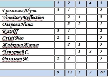 Огромное спасибо Cristi Neo, взявшей на себя подсчет и Сергею Чепурному, который помог разобраться в правилах подсчета.