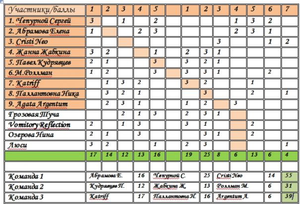 Командная победа с большинством баллов по прозе у команды номер 3 и Katriff (Kartiff, Ника Паллантовна, Agata Argentum)