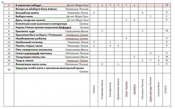 Таблица голосования: