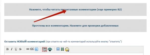 1) Если вы заходите в топик, который еще не читали, значит все комментарии в нем для вас новые. Вам показываются первые 30 (настраивается) комментариев и чтобы прочитать следующую порцию, вам надо нажать на кнопку подзагрузки. Это снимает проблему загрузки сразу «миллиона» непрочитанных комментариев — топик загружается быстро и не «виснет» при этом.