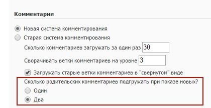 Для того, чтобы все это «примерить на себя» надо зайти в тонкие настройки внешнего вида и включить новую систему комментирования. Там же можно установить сколько комментариев подгружать за один раз и на каком уровне «сворачивать» ветки при подгрузке уже прочитанных комментариев.