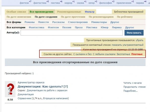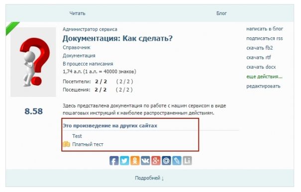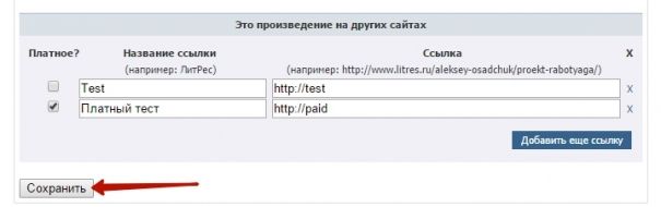 Теперь на странице вашего произведения появятся эти ссылки в таком виде