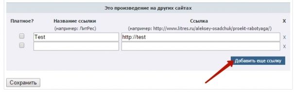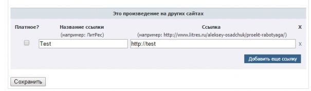 Теперь при редактировании параметров произведения можно указать эти ссылки на другие сайты.