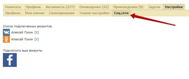 Через какое-то время я добавлю гугл, твиттер, яндекс и мейл.ру. Аккаунты этих соц. сетей предварительно надо будет «привязать» со специальной страницы настроек профиля. На этой же странице можно привязать другие соц. сети либо отвязать существующие аккаунты.
