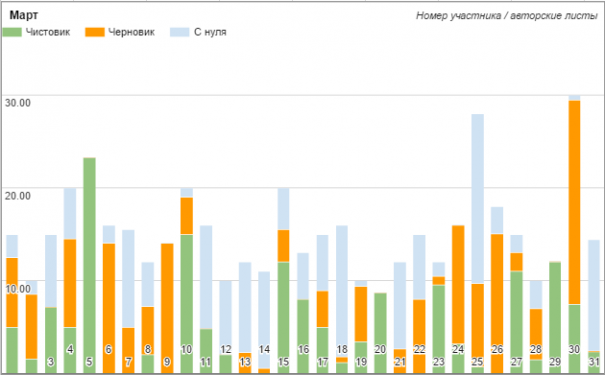В очередной раз коллективные и индивидуальные таблицы и графики. Смотрим, изучаем, делаем выводы. И помним: для окончания работы у нас только весна, а летом — конкурс, за успех которого лично я очень болею. Не подведите!