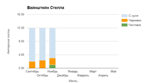 Первая картинка — это тоже, что и общая, но рядышком, в сравнении на каждый месяц, здесь хорошо видна работа над черновиком и в состояние в целом.
