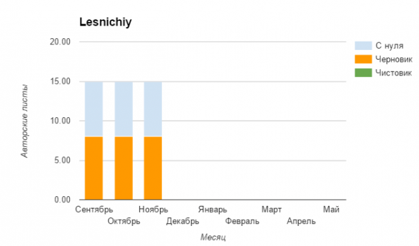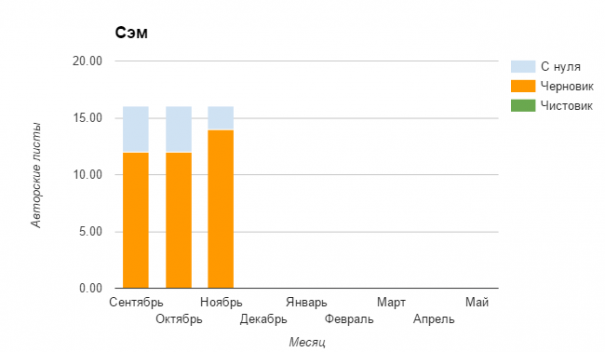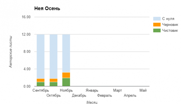 Но задел у нас есть, задел хороший: наше сообщество живет, в некотором смысле даже процветает и уверенно идет к своей цели. Правда, хотеось бы, чтобы все четыре десятка участников приходили к дате сбора сведений о прогрессе с новыми успехами — хотя бы с одной вновь написанной страничкой. А пока так выходит не у всех. И не все приходят с отрывками на отзывы… понятно, что не всем такой стиль работы подходит, но кому подходит, друзья, я призываю быть активнее! Интересно же познакомиться с как можно большим числом участников и их историями.