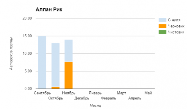 Алан Рик, Алена Малышева и Ариса Вайя здорово работают с черновиком. Чистовика у них немного, но зато черновик очень бодро движется. Очень бы хотелось, чтобы в сессию успели, а потом за пару месяцев летнего конкурса довели произведения до идеала.