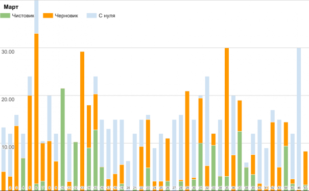 за каждые 10 тысяч чистовика — 2 балла, за каждые 10 тысяч черновика — 1 балл