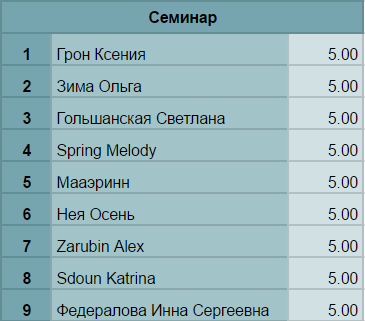 Рейтинг по семинару