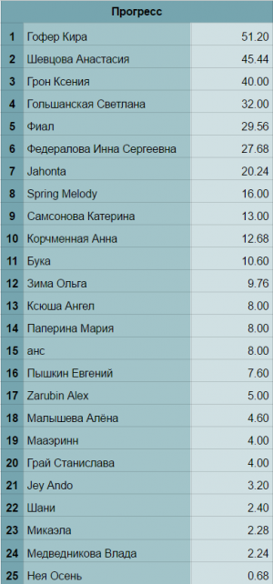 Теперь я опубликую остатки данных за сентябрь, окончательный общий рейтинг, а по октябрьским активностям будут промежуточные результаты. И так дальше и пойдёт вплоть до мая. Если сейчас вы запутались — не переживайте и просто читайте дальше )))