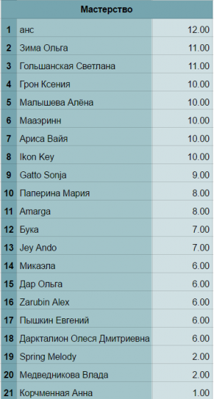Рейтинг по курсу «Мастерство» (за первое задание с 10 сентября по 10 октября)