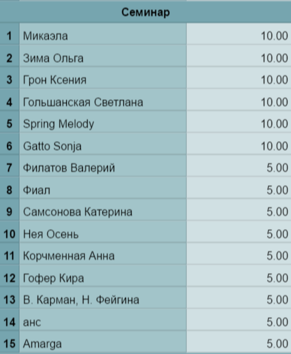 Отдельное спасибо Зиме Ольге и Кире Гофер за организацию и кропотливый труд по подсчёту!
