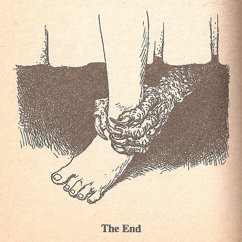 Как только мама ушла, Яла спустила пятку вниз. И тут же отдернула. Опять спустила и опять отдернула. Наконец за пятку схватила мохнатая рука, и Яла, визжа от счастья, свалилась под кровать.