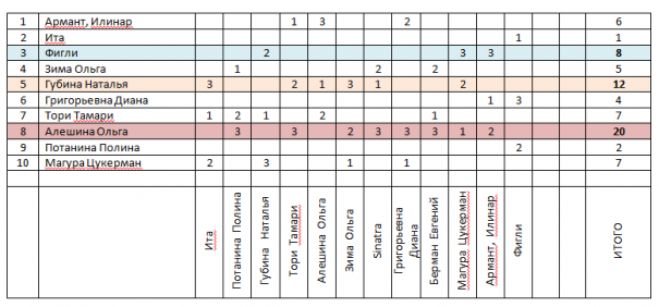 1 место — Алешина Ольга 20 баллов writercenter.ru/profile/Mellisa/