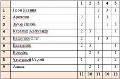 2 место — Грон Ксения, Зауэр Ирина (11 баллов).