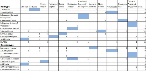 Итоги голосования в таблице