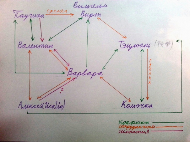 Характер:— Валентин, — мужчина протянул ей правую руку, склонив голову и улыбаясь чуть на сторону. Варвара ожидала увидеть китайца, но этот был явно не азиатского происхождения. Выглядел лет на сорок, и пробивающаяся седина в светлых волосах, зачёсанных в недлинный хвост, подчёркивала возраст. У мужчины был чарующе приятный низкий голос, мягкий, но с проскальзывающими стальными нотками и лёгкой хрипотцой. Взгляд цеплял острый нос с ярко выраженной горбинкой, будто оставшейся от хорошего перелома… И страшные холодные глаза цвета зимы. Предельно светлые у зрачка и почти чёрные у края радужки, они, казалось, светились, и наблюдали за ней холодно и с неким любопытством, несмотря на вежливую улыбку на губах Валентина… Примерно так смотрят на подопытного.