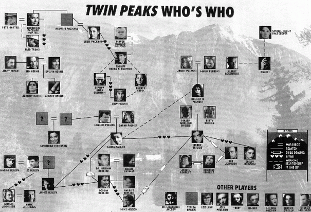 Sv. I. поделилась с нами картой-схемой взаимоотношений между персонажами. Из новеллизации сериала «Твин Пикс» Д. Линча: