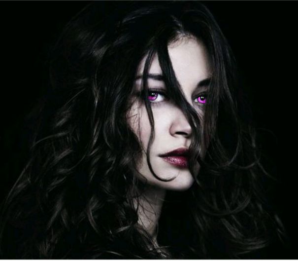 Как и все элейри, она изящна и очень красива. Есть в ней что-то, что вызывает не просто восхищение её изящной и девственно-чистой красотой, но и пробуждает тёмное томление и страсть. У неё тонкое, треугольное лицо с высокими скулами и острым подбородком. Пронзительно лиловые, словно сияющие изнутри лиловые глаза, способные заглянуть в самую душу и читать в самых тёмных, даже неведомых самому тебе уголках, в их глубинах грозно клубится тайное знание, накладывающее отпечаток глубокой печали на весь её облик. У неё кораллово-алые чувственные губы, точно рана на бледном лице, оттеняющая её величественную холодность. Тонкое лицо её обрамляет непослушная буря чёрных волнистых волос, точно роскошная грива. Она невысокая, с тонкими, точёными руками, полной грудью. Как и у всех дев элейри, у неё тонкая, гибкая талия, и чем-то, своим невысоким ростом, или тонким изяществом рук, некоторой даже хрупкостью, она напоминает девочку-подростка.
