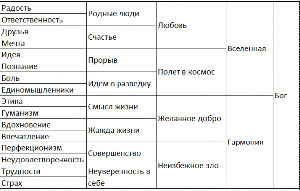 Метод ассоциаций довольно интересный, но, повторюсь, результат для меня вышел довольно ожидаемый. Особенно четко это прослеживается в двух последних шагах: вселенная+гармония=бог.