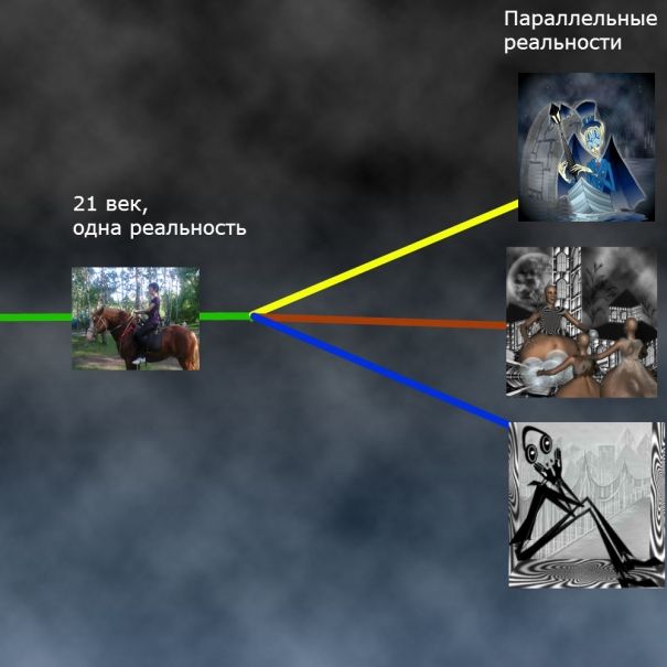 Единый поток времени делится на несколько ветвей. На несколько вариантов реальности. В одном будут строить мир по первому типу, во втором – по второму, и так далее. Кто разделил время, не знаю. Может, люди додумались. Может, время само разделилось, чтобы спасти себя от войны. Может, люди из будущего повлияли на настоящее.