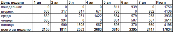 Из неё наглядно видно, что меньше всего я любила писать по понедельникам