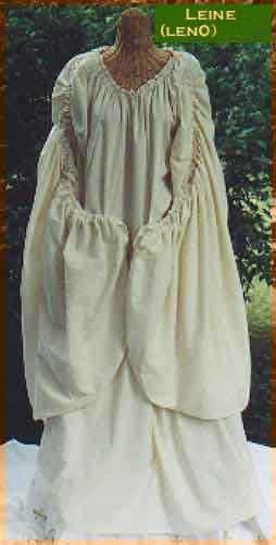 Рубаха (le ine), сотканная изо льна, у мужчин доходила до колен или чуть ниже, у женщин – до лодыжек, а на талии перехватывалась ремнем или поясом. Мужчины и женщины носили белье из более тонкой ткани, чем остальная одежда. Эта одежда часто упоминается в сказаниях под словом lйine или lйne – сейчас это слово означает «сорочка». Нижнюю рубаху изготавливали из шерсти или льна, иногда из шелка, редко – из атласа, затем богато расшивали золотой и серебряной нитью.
