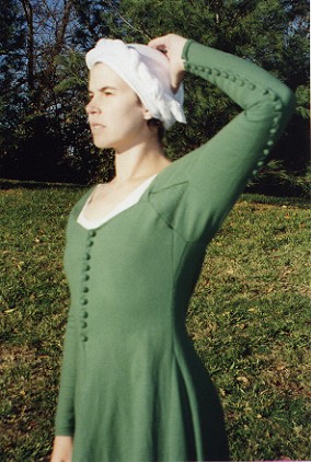 Моя героиня Вивиана — дочь лэрда, а значит может позволить себе любой роскошный наряд. В будние дни она носила льняную робу платье-котту. На праздники она одевалась соответственно традиции, в красный тартан клана.
