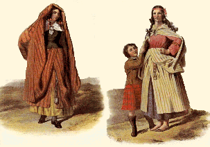 Женщины носили шерстяные платья, которые украшали пестрыми узорами из золотых и цветных нитей или бахромой. Женщины из народа тоже не пренебрегали красивыми одеяниями, прицепляя к платью цветы или веточки растений.