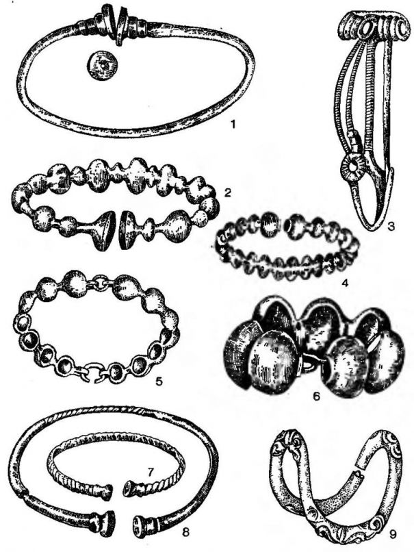 Ими сцепляли одежду не только на плечах, но и на груди. Кроме фибул из украшений женщины любили кольца из золота, серебра и бронзы, шейные ожерелья или гривны, браслеты на руках и на ногах, поясные цепи и многое другое, что могло показать их положение в обществе.