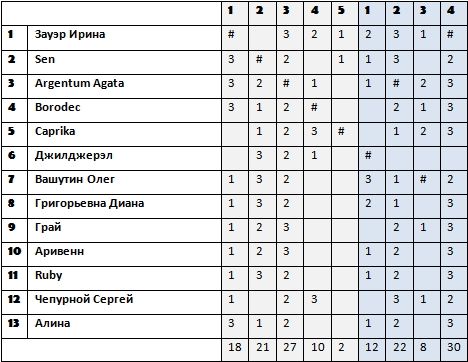 Почетные места распределились между игроками следующим образом: