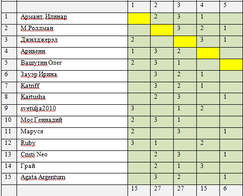 1. М.Роллман и Джилджерэл (по 27 баллов)