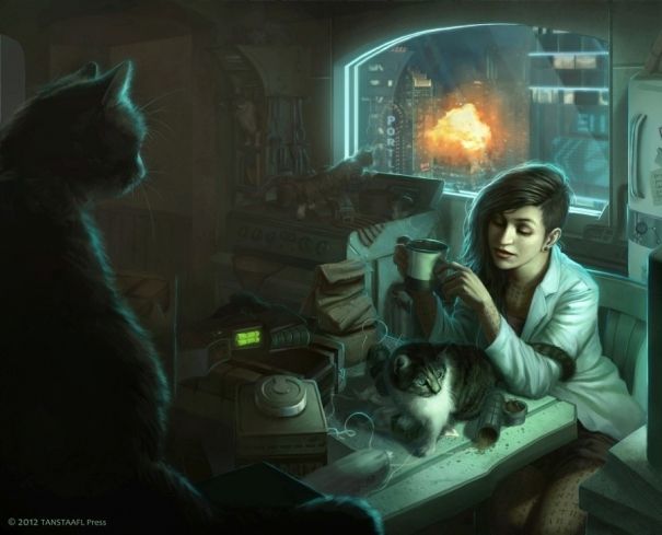 Высокие футуристичные технологии соседствуют с совершенно архаичными машинами и механизмами середины XX-го века.