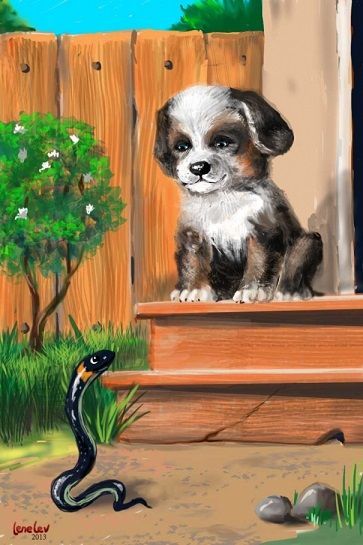Щенок лежал на крылечке и пытался уснуть. Сашка ушёл на рыбалку, а его с собой не взял. Обидно, но что тут поделать? Сказал: «Сторожи дом» и, надев большие резиновые сапоги, закинул на плёчо удочку и подался за калитку.