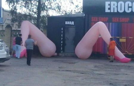 Перед тем, как ещё раз похвалить автора, я хочу поделиться творческим решением оформления входа в секс-шоп. Возможно, для кого-то оно послужит хорошим подспорьем в работе...