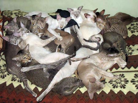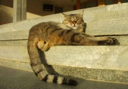Как сами можете убедиться, при массовом отдыхе кошек они не стремятся строго соблюдать симметрию укладки и спят как попало.