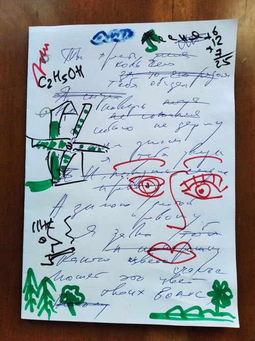 Помнится, когда я намедни работал над очередным поэтическим шыдэвром, то извёл много писчей бумаги, пока не получил удовлетворительный результат. Для наглядности — фото моей вдохновенной работы над лирическим сочинением.